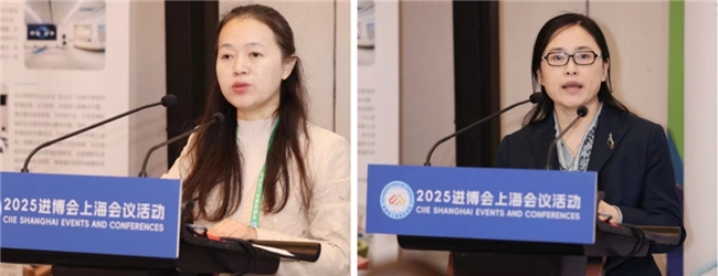 上海浦东新区商务委员会副主任董晓玲(左)、浦东新区企业走出去综合服务中心总经理王玥(右)