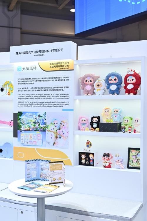 元气玛特成立于2021年9月,植根于横琴粤澳 合作区,是一家以AI技术为核心、致力于构建元宇宙潮玩电商新场景的科技企业。公司成立仅四年便凭借"电商+元宇宙+AIGC"的创新模式,迅速跻身行业头部,堪称潮玩领域"现象级"黑马。本次展会上,元气玛特通过大面积LED荧幕与多媒体互动装置,系统展示了其基于元宇宙技术的潮玩产品,展现了数字与实体 融合的创新成果,吸引了大量海内外客商与合作伙伴的浓厚兴趣。