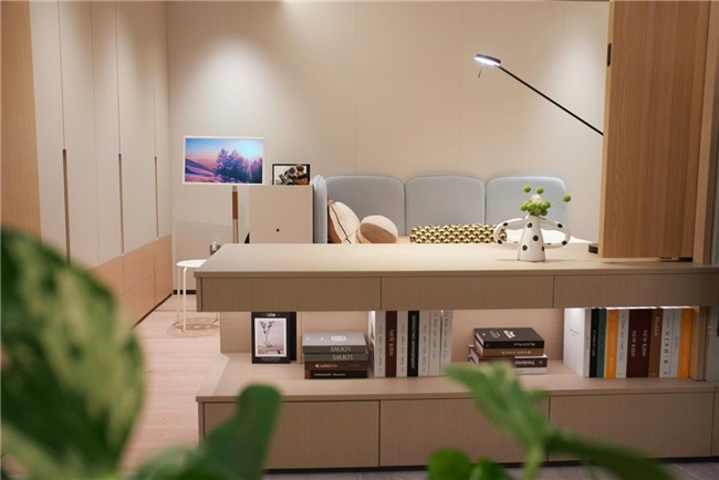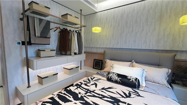 在好房子展厅内,森歌的展示堪称对“好房子”标准的生动诠释。不同于传统定制产品的单一呈现,品牌以高颜值、高格调的全屋解决方案,沉浸式演绎了主次卧衣帽间的收纳美学、儿童房书桌的安全设计与次卧衣柜的空间巧思。除展示产品之外,还覆盖了橱柜、浴室柜、阳台柜等全屋家居。