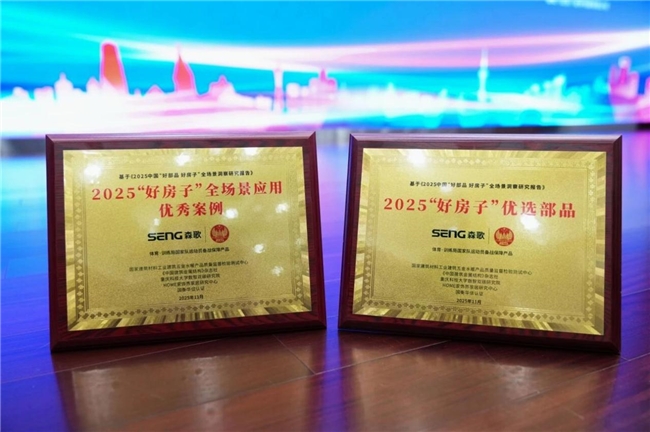 随后,在城市更新助力“好房子”高质量发展应用交流会暨城市更新应用标准化技术委员会成立大会上,森歌再添两项国家级重量级荣誉——2025“好房子”优选部品与2025“好房子”全场景应用优秀案例,实现了从“展品”到“标杆”的跨越。