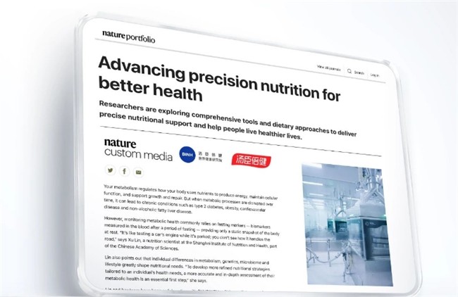 精准营养方面,2020年汤臣倍健历时5年自主建成了国内首个全自动在线干血斑检测中心。2024年汤臣倍健联合中国科学院上海营养与健康研究所等权威机构,在全球率先对内稳态概念的多维度量化评估取得突破性进展,构建了全新的代谢健康量化模型。因在精准营养领域的突破性研究成果,今年6月汤臣倍健再次登上国际顶级期刊Nature增刊,是“全球科技企业”专题唯一VDS企业。