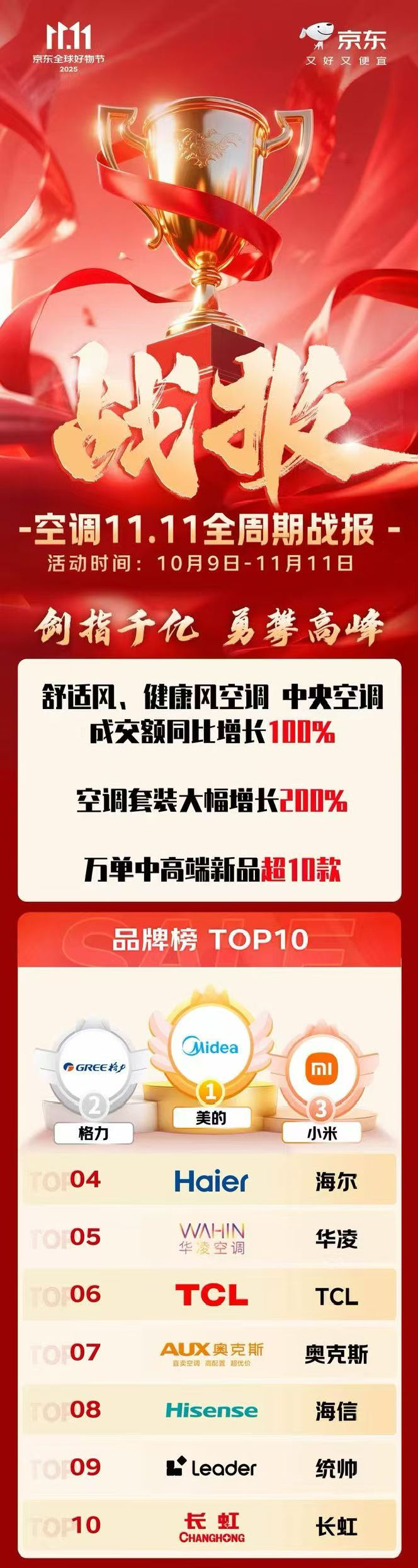京东双十一收官!美的空调以硬核实力稳坐销冠宝座