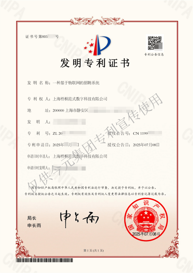 在人才成为企业核心护城河的时代,招聘的核心价值已从 “填补岗位空缺” 升级为 “支撑组织可持续增长”。国家发明专利的获批,不仅是今元集团在人力资源智能技术领域的一次突破性进展,更是对“智能招聘新范式”的实践与兑现。