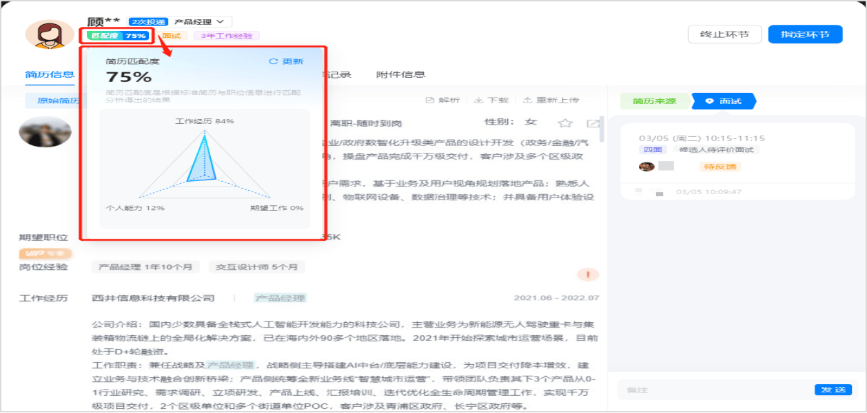 · 关键技术岗位招聘:面对算法工程师、架构师等热门技术人才,系统自动识别“高匹配、高竞争”的候选人,并启动主动曝光策略,帮助企业在与行业巨头的人才博弈中赢得优质人才青睐。