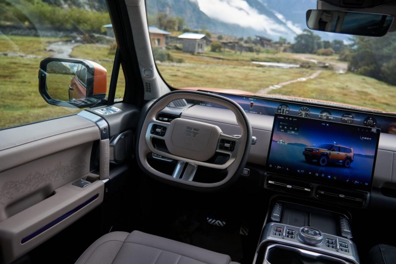 在内饰设计上,纵横G700采用东方美学的设计,以喜马拉雅山脉为灵感,珠峰8848等高线纹理与图腾徽章贯穿座舱。座椅方面G700臻选Nappa真皮座椅,精选3-5岁黄牛头层真皮,经14层堆叠工艺处理,全方位承托身体舒缓。主副驾座椅支持8点按摩和3档通风/加热功能,前排靠背最大可至164°仰平,为用户提供极致的舒适体验。二排右侧座椅联动副驾折叠后可形成“女王座椅”,并可秒变“大床房”模式,让用户在越野途中轻松躺平,享受旅途的从容惬意。