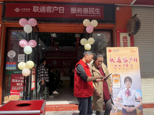 近日,中国联通恩施州分公司(以下简称恩施联通)客户服务部携手巴东县分公司深入村镇,在巴东县茶店子镇,开展了一场以“联通客户日 服务惠民生”为主题的实践活动,将便捷的数字服务送到了百姓的家门口,生动践行了“以人民为中心”的发展理念。