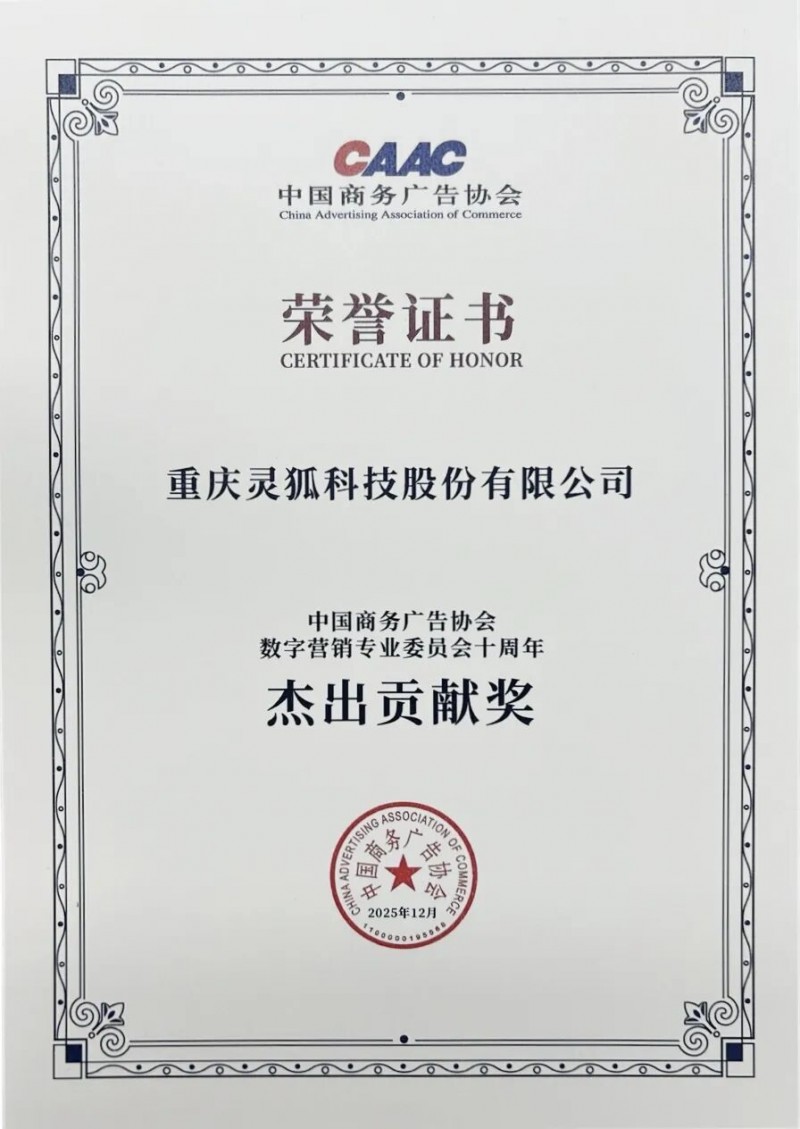 AI营销专家灵狐凭借在数字营销赛道的长期深耕与卓越实践贡献,成功斩获中国商务广告协会数字营销专业委员会十周年“杰出贡献奖”;与此同时,灵狐合伙人石岩荣膺“杰出贡献奖”与“组织贡献奖”双重殊荣。这一系列重磅荣誉的加持,彰显了灵狐在数字营销生态中的领先行业地位与深厚专业积累,也印证了合伙人石岩的卓越领导力与对行业发展的积极推动作用。