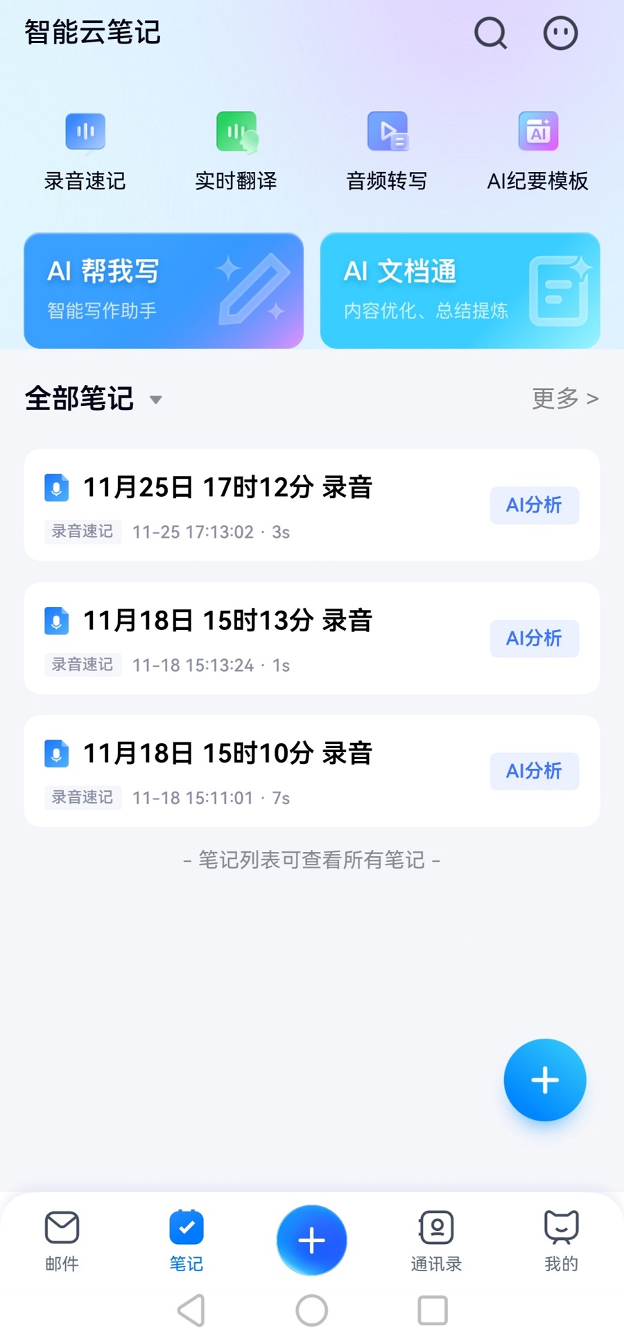 • 189邮箱:189邮箱鸿蒙版正式发布,首发智能云笔记功能,包含录音速记、音频转写、AI纪要模板、AI帮我写等功能,助力用户高效办公