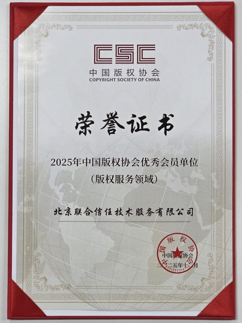 值得关注的是,联合信任曾于2018年荣获国家版权局和世界知识产权组织(WIPO)颁发的中国版权领域最高奖项“中国版权金奖”保护奖。多年来,联合信任始终专注于时间戳服务、电子证据取证、知识产权保护、电子邮件认证、AIGC内容溯源以及数据资产存证等核心业务,致力于为司法、政务、金融、知识产权等各领域提供可靠的电子数据法律效力保障服务。联合信任此次再获中国版权协会优秀会员单位称号,是对其长期深耕版权保护、以技术创新赋能行业发展的充分肯定。