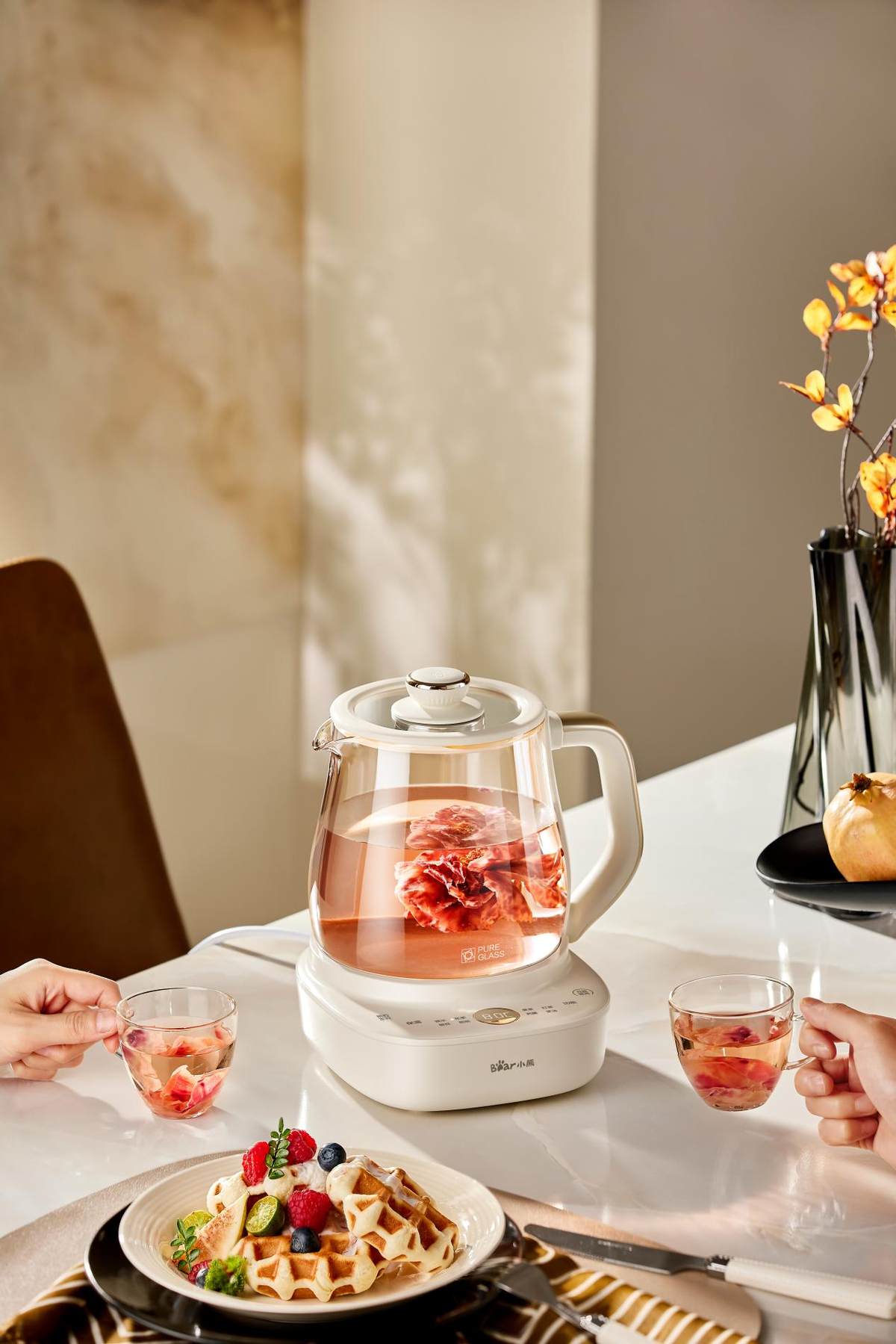 以养生壶品类为例。针对办公室场景的静音需求,小熊电器推出小气泡轻音养生壶,以图书馆级静音表现实现“存在却不打扰”的品质体验;为满足养生爱好者对温度控制的严苛要求,小熊电器全玻璃养生壶又通过远红外精准控温技术,确保食材营养充分释放。
