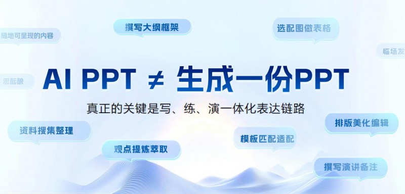 在生成式AI重塑办公场景的浪潮下,AI生成PPT已不再是新鲜事。然而,当数以万计的PPT被快速生成后,用户面临的真正挑战才刚刚浮现——如何将屏幕上的观点,转化为掷地有声的表达?