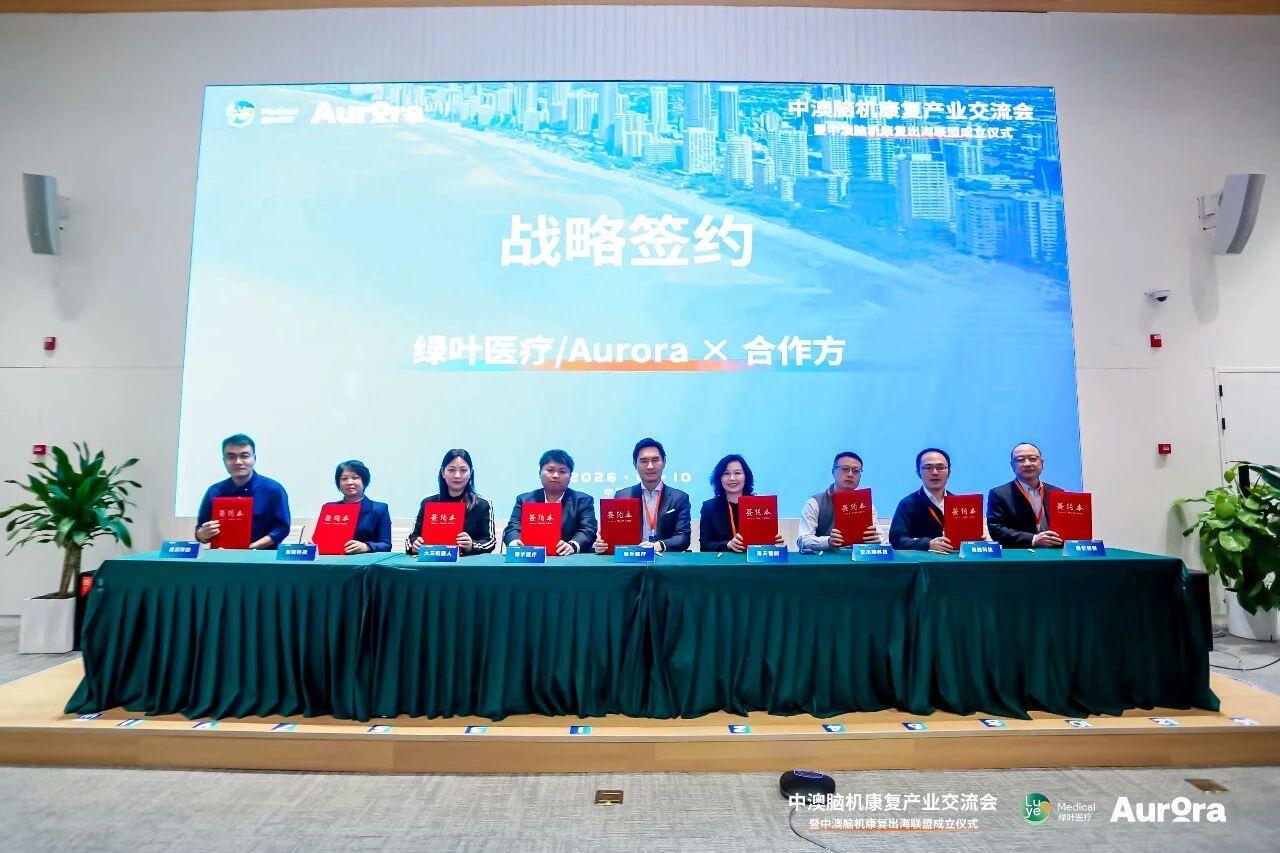 联盟由绿叶医疗Aurora发起。会上,联合翔宇医疗、海天智能、大艾机器人、安杰莱科技、柔灵科技、韶脑科技、培脑科技、展虹创健等国内多家头部康复科技企业签署合作协议,共建中澳脑机康复出海联盟。“依托 Aurora已通过的ACHS医疗质量认证体系、长期位居前列的AROC康复评级表现,以及覆盖康复、精神心理与社区医疗的完整服务网络,联盟将为中国脑机与神经相关技术进入澳洲市场,提供可验证的临床落地场景与高度可信的产业背书。”绿叶医疗(中国)运营副总裁石建霞女士在采访中介绍,“联盟制定了清晰的合作发展规划。接下来,联盟将在科研项目/长期的人才与科研协同机制建设、赴澳考察、产学研项目持续落地、行业白皮书发布等合作路径展开模式探索,持续拓展中澳协同发展的价值空间。”