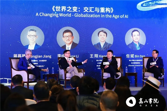 随后,在高山书院学术管理委员会委员、复旦大学副教授、全球人工智能创新治理中心副主任蒋昌建的主持下,李成教授与高山同学中的投资界领袖——高山书院2019级(春)同学、东方港湾董事长但斌,高山书院2023级同学、小米集团高级顾问、高山新域创始合伙人王翔,展开了一场精彩纷呈的对话。嘉宾们分别就投资哲学、产业出路、青年选择等话题激烈交锋,现场观点碰撞,金句频出,充分展现了高山“思辨”传统的魅力。