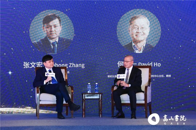 紧接着,“科学之光”环节将年会推向了又一个高潮。在这一环节中,继斯德哥尔摩领奖后,首次在高山书院年会聚首的两位2025年诺贝尔化学奖得主——Omar Yaghi教授、Susumu Kitagawa(北川进)教授,以及艾滋病“鸡尾酒疗法”开创者David Ho(何大一)教授三人,分别与高山书院学术管理委员会委员展开 对话,分享他们的科研心路与对人类未来的思考。