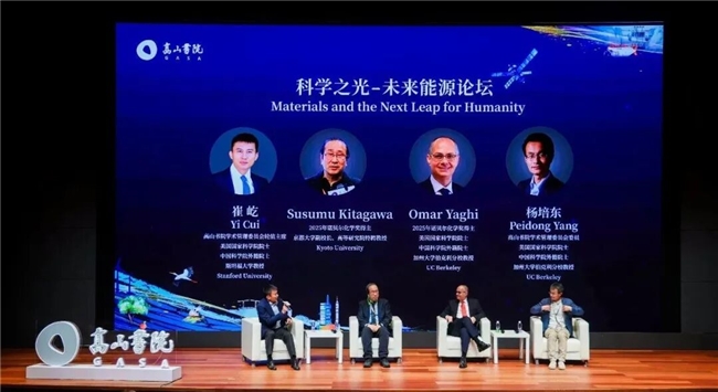 在崔屹教授的主持下,两位诺奖得主与杨培东教授共同探讨了能源未来的方向。杨培东强调“太阳能转化为化学能”是终极存储方式,并展望核聚变作为长期能源解决方案。Omar Yaghi则提出“材料即工厂”的愿景,通过MOFs实现CO₂捕获并直接转化为有用化学品。北川进重申“气体时代”已来临,分离、存储、转化是三大核心挑战。