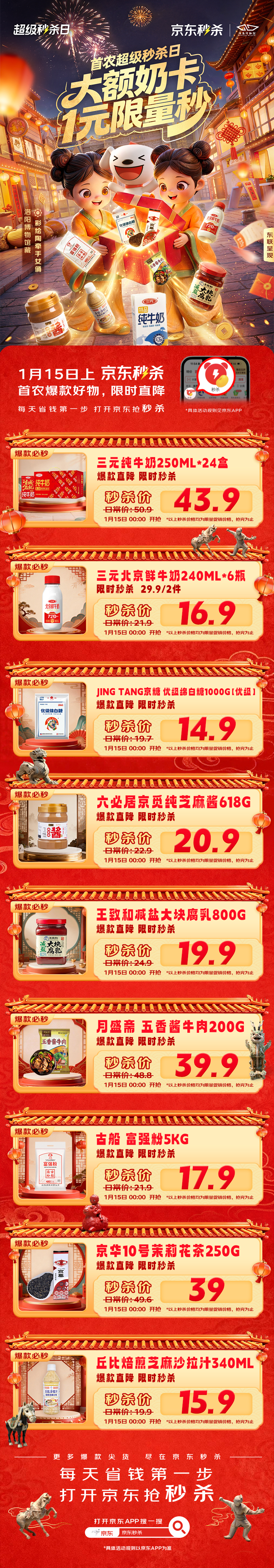 年味渐浓囤货忙!京东首农超级秒杀日1月15日开启,首农爆款好物限时直降
