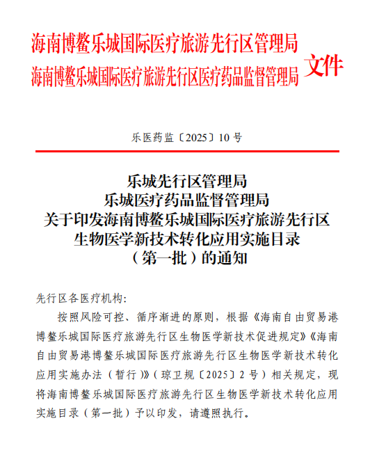 海南帝湾医院依托博鳌乐城国际医疗旅游先行区“先行先试”政策优势,引入并推进该项技术在乐城落地转化。项目自2025年2月获批开展以来,已成为博鳌乐城先行区内同类项目中临床应用规模与患者接受度均位居前列的重点项目之一。