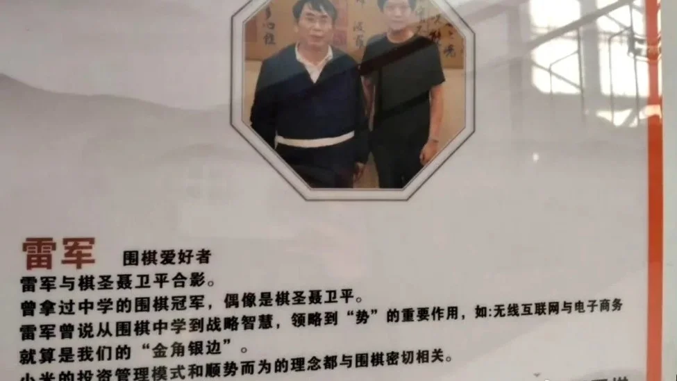 作为公开的围棋爱好者,雷军与聂卫平素有交集。雷军曾自称中学时代获得过围棋冠军,并将聂卫平视为偶像。他亦多次公开表示,其商业战略与管理理念深受围棋智慧启发。