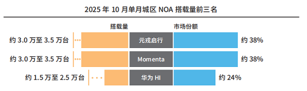 此外,在2025年1月至 10月期间,元戎启行累计交付搭载城区 NOA 的量产车型约12 万至15万台,累计市占率约为23%,成功跻身行业前三。