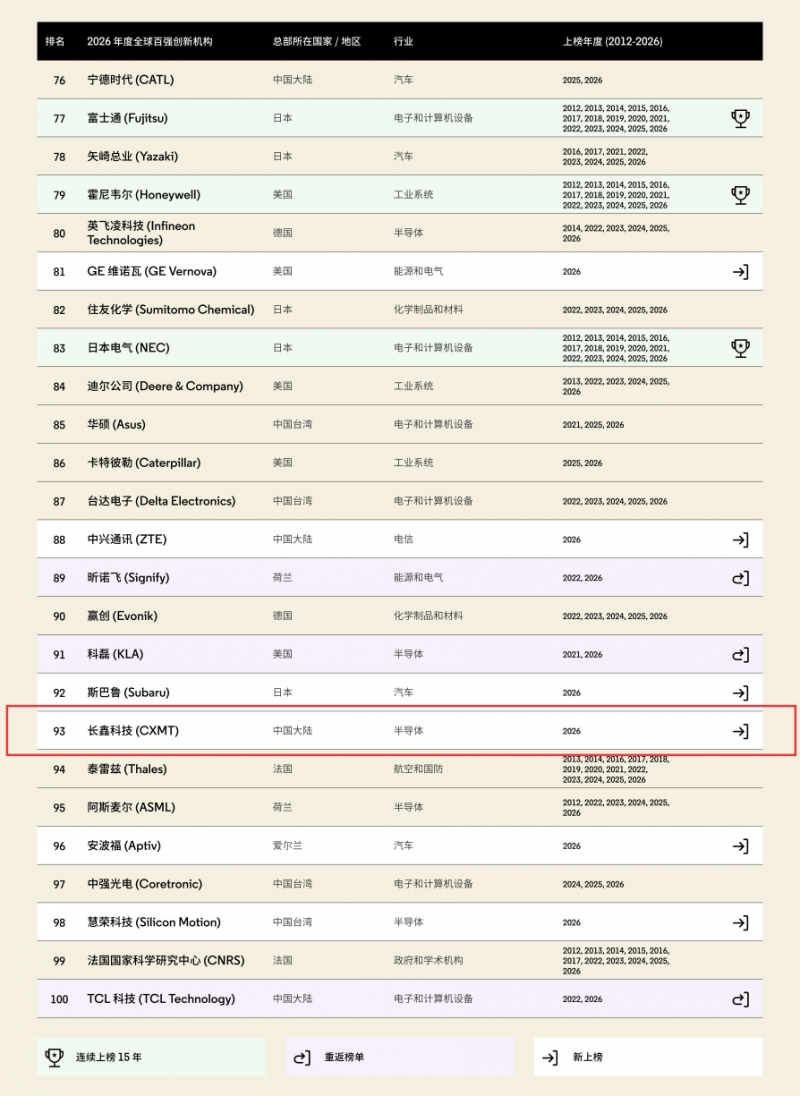 机构榜单更新!长鑫科技首登科睿唯安“全球百强创新机构”榜
