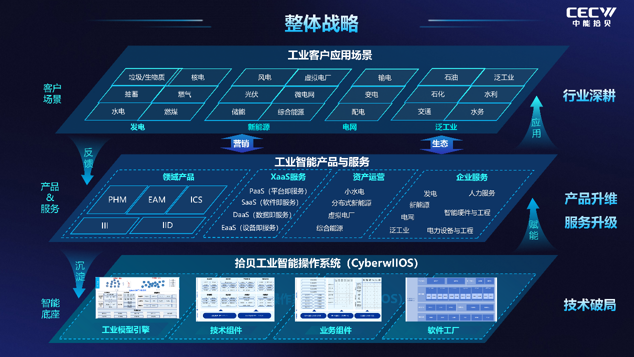 立足APM核心领域,中能拾贝以CyberwIIOS为底座,以“数据+知识”双轮驱动,提供“XaaS服务+资产运营+企业服务”多元业务服务。通过服务沉淀高价值数字资产,反哺产品持续迭代,激活产业增长新动能,构建“生态协同、价值共创”的良性闭环。