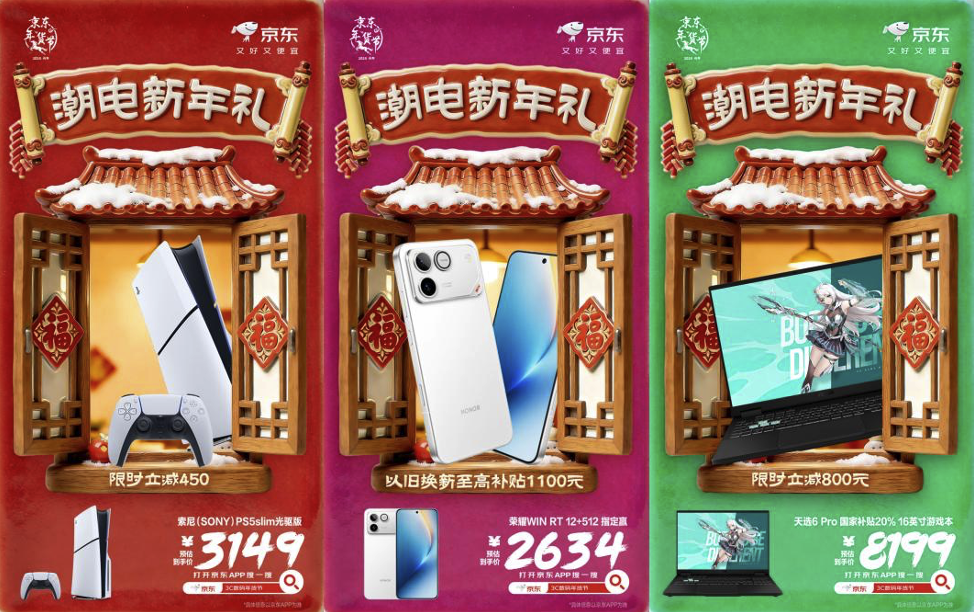 随着“科技年货”走俏,数码潮品已成为今年春节犒劳自我、馈赠亲友的进阶之选。无论是助力效率起飞的生产力装备,还是打造沉浸假期的娱乐神器,都已加入人们的新年清单。为此,京东年货节特别推出“潮电新年礼”,覆盖手机、电脑、游戏设备、智能穿戴等热门品类,并叠加政府补贴、以旧换新、限时直降等多重优惠,助力消费者以更划算的价格入手心仪装备。即日起,打开京东APP搜索“3C数码年货节”,进入活动会场,抢先焕新新年潮电好礼。