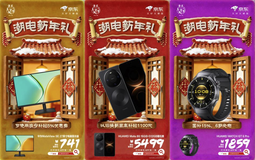 对于华为生态用户而言,一套“全家桶”式焕新方案同样值得关注。华为Mate View SE 27英寸显示器凭借广色域与莱茵认证的护眼技术,让用户无论是面对繁琐的报表还是沉浸于电影大片,都能享受视线开阔、细节丰富的视觉盛宴,配合政府补贴,到手仅需741元;搭配新一代HUAWEI Mate 80手机,流畅的交互与顶级的影像系统堪称高端手机标杆,以旧换新还可享至高1100元补贴,5499元即可入手;若再佩戴上支持国补15%的HUAWEI WATCH GT6 Pro,健康监测与时尚穿搭一手掌握,无论是日常通勤、运动健康管理还是春节出行记录,都能带来更便捷的使用体验,预估到手价1859元,更享6期免息服务。