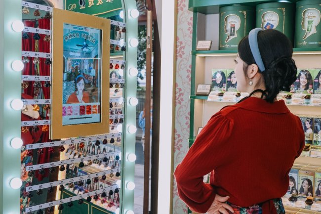 与此同时,快闪店更通过多元互动体验,为顾客铺开一条新春广府风情之旅。顾客可在店内的AI拍报机生成趣味十足的专属头条,感受百年前于街巷的读报记忆;亦可抽取新年幸运签,来个好运“签”到;或体验一键更换发色,找到专属自己的新春“好彩头”。