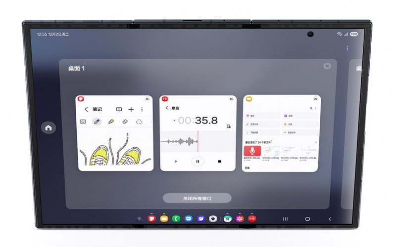 不仅如此,以往需要外联显示设备才能使用的Samsung DeX,如今在三星Galaxy Z TriFold中实现了本地独立运行。开启DeX模式后,用户可以创建至多四个独立桌面,每个桌面可同时运行五个应用程序,用户在不同的场景中可以快速切换桌面让效率实现提升。当然,如果需要两块大屏的协同操作,用户也可连接外部显示设备,用扩展模式实现PC般的高效交互。