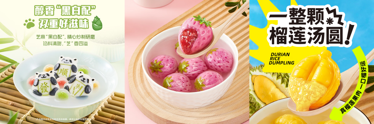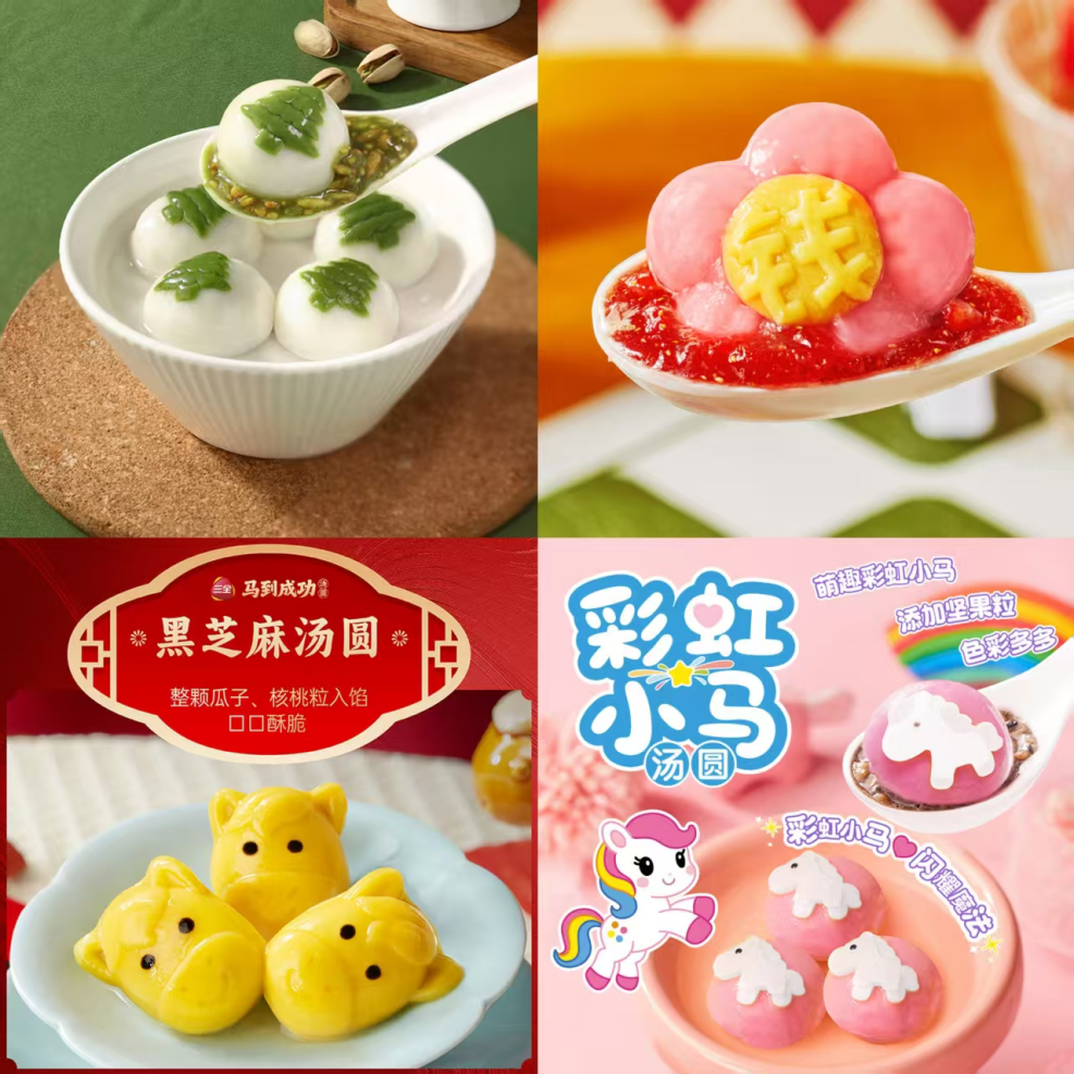 满足健康需求的同时,高颜值、好寓意、趣味化也成为今年汤圆市场的新风尚。如今,消费者购买汤圆,不再仅仅为了饱腹,更是在购买一份好心情、一个好彩头,期待通过食物获得情绪价值与情感共鸣。