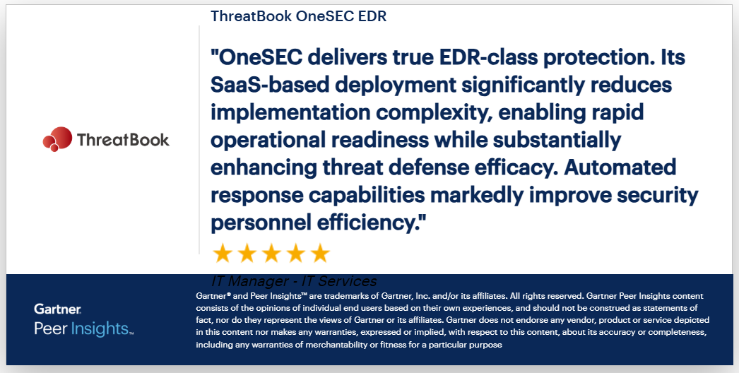 本次报告中,微步收获高科技、服务、金融、建筑、零售等多行业大企业用户的高度认可,在产品能力、部署体验、支持体验等几大核心维度均斩获满分好评。对微步而言,这些评价充分印证了微步在国内终端安全领域的行业领先实力与标杆地位。多数用户评价显示,微步的高级威胁检测响应能力出色,能有效抵御APT组织、新型流行黑产等威胁,且SaaS化的部署模式高效、便捷,符合国际主流技术路线,现摘取部分评价如下: