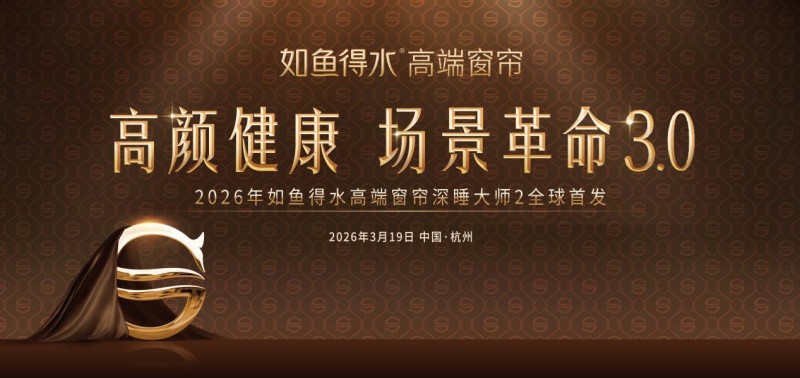 2026年3月19日,共鉴“高颜健康 场景革命3.0”——2026年如鱼得水高端窗帘深睡大师2全球首发(中国·杭州)。新品发布会将全面揭晓【深睡大师2】在功能、形态、健康、体验等系统的革命性进化,同时也以此为核心支点,启动从品牌势能、产品效能、终端动能、到用户价值的全维度赋能体系。诚邀共赴,同启新篇。