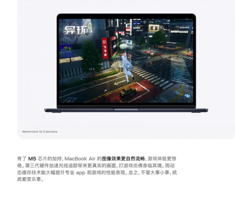 苹果官网新品MacBook Air页面展示异环游戏画面