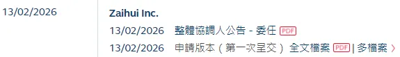 2026年2月13日,香港联合交易所有限公司官网正式披露了Zaihui Inc.(以下简称“再惠”)提交的上市申请文件,标志着这家专注于本地生活服务的数字化营销企业正式开启了登陆国际资本市场的征程。