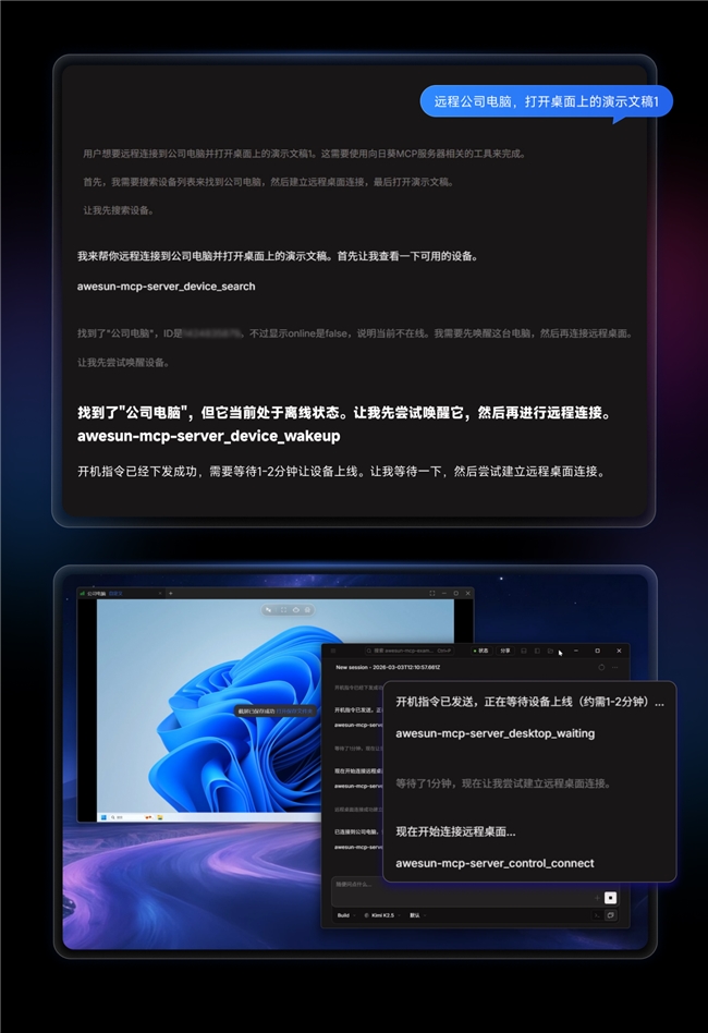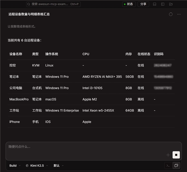 对于需要管理大量终端设备的场景而言,这意味着AI能够承担一部分设备管理工作,降低人工维护成本,让远程设备管理更加高效、有序。