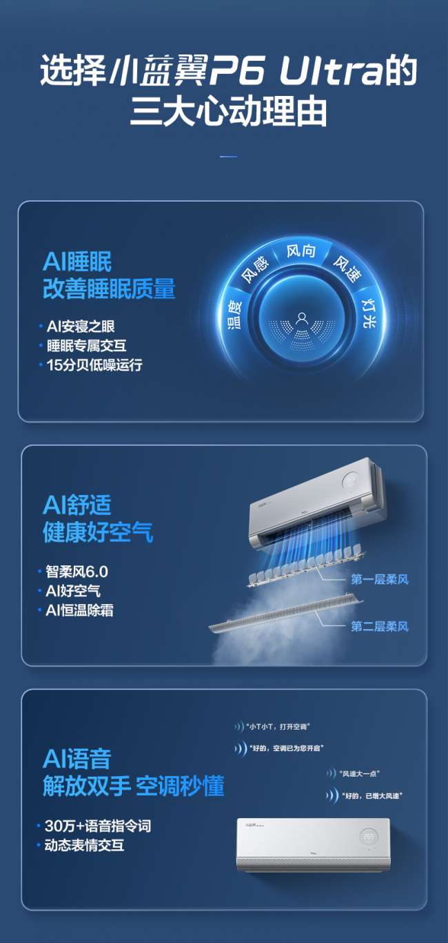 即将上市的 TCL 小蓝翼 P6 Ultra AI 健康睡眠空调,既是 TCL 空调新一代 AI 健康产品矩阵的重要补齐,更是其在 AI 健康睡眠赛道持续深耕。让我们共同期待!