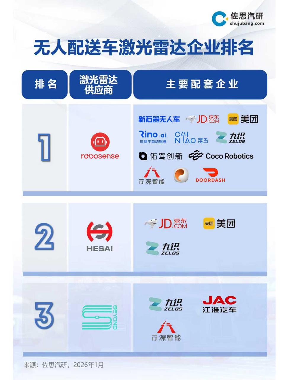 无人配送正迎来爆发式发展的黄金时代。中研普华产业研究院预测,至2030年,中国无人物流车市场规模将达到2634亿元,年均增速超过40%。速腾聚创凭借与包括新石器在内的行业头部企业的 技术适配与规模化供货,已在无人配送车激光雷达市场占据绝对领先地位,搭载量稳居行业第一。此次合作的深化,不仅是双方技术路线与商业战略的高度契合,更是推动整个无人配送产业迈向成熟商用的关键一步。