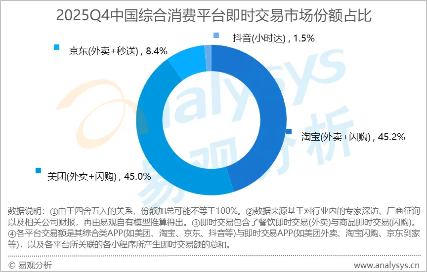 易观报告:Q4淘宝闪购成交份额达45.2%,与美团基本持平