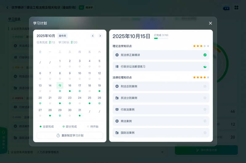 其次,以全天候智能伴学破解“完课率”死结。 针对在线教育普遍存在的“报名即失联”、完课率低下的行业痛点 ,灵犀系统摒弃了依赖人工催课的传统督学模式。系统可根据学员的目标与学情,自动生成并动态调整专属弹性学习日历 。