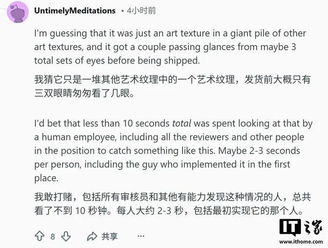 此外,其他玩家也陆续曝光了多处类似存在细节缺失的画作,这些素材的粗糙程度均指向了 AI 生成工具的典型缺陷。