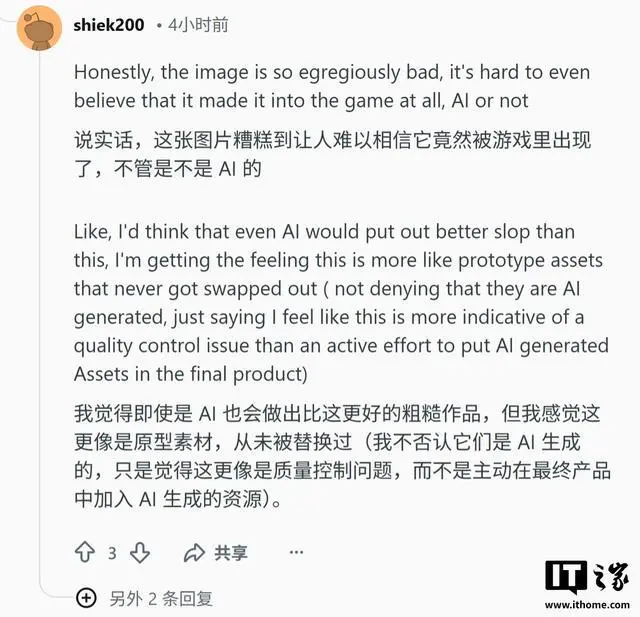 Valve 早在 2024 年就修改了平台政策,强制要求开发者必须明确披露 AI 技术的使用情况。不过,这一机制高度依赖开发团队的诚实与自觉,导致部分游戏在实际发行时并未如实标注。