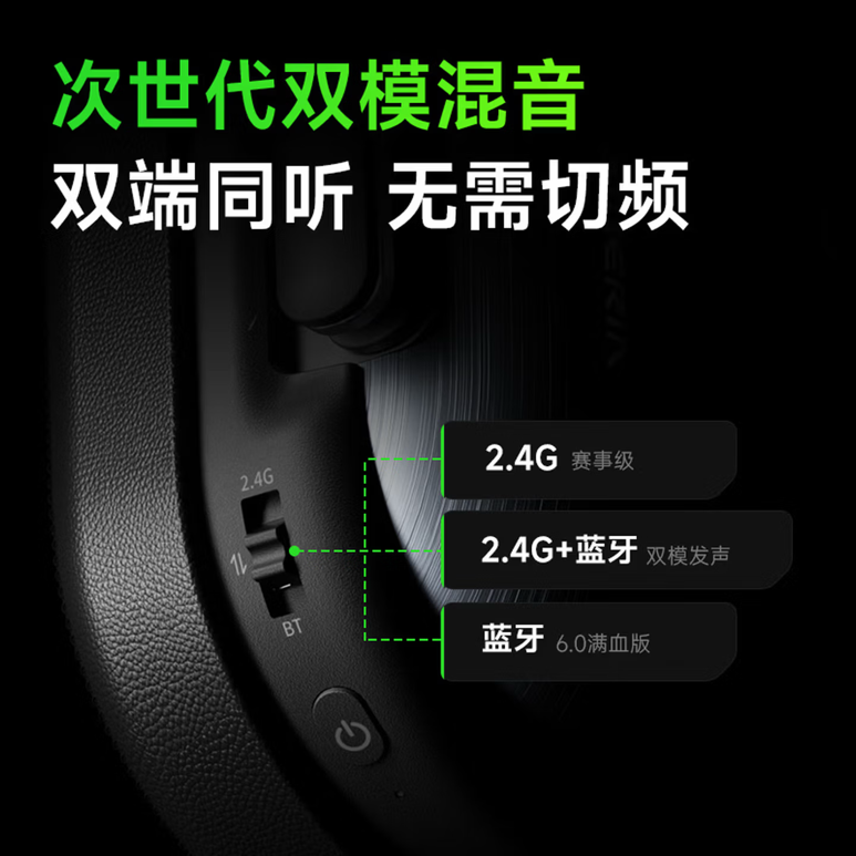 如果说腔体是战场上的望远镜,那连接就是手中的通讯线。第三代进阶双模技术让2.4G与蓝牙实现了真正的同频混音,两路信号独立解码、无压缩同步传输,PC端激战正酣时,手机端的微信语音、短视频同样清晰入耳,无需来回切换,游戏与社交真正做到了并肩而行。