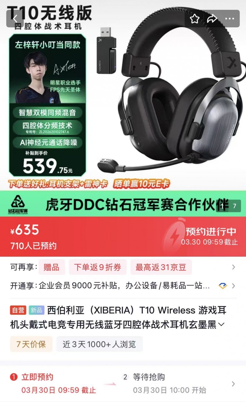 在电竞世界里,声音从来不只是背景,而是决胜时刻那颗精准制导的子弹。3月30日,京东抢先15天首发西伯利亚(XIBERIA)T10 Wireless游戏耳机,补贴到手价539.75元。更惊喜的是,京东同时带来以旧换新叠加下单即享60天意外换新险,晒单送E卡,下单还送支架三重专属福利,从入手到使用全程贴心护航。现在,用户只需打开京东APP,在首页搜索“西伯利亚”,即可预约购买,抢先一步体验这款声学力作。