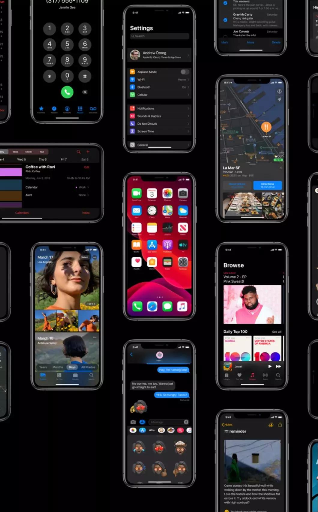 发布会上,ios新推出了“黑夜模式”给UI设计风格注入的新元素,苹果地图“卷土重来”,还有更为强大的,更为智能的照片编辑工具,还提供以 Apple ID 登录应用或网站的选项等等。
